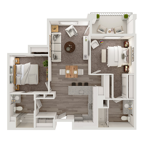 The apartments at Clearwater at Riverpark are open and bright with luxury finishes and convenient touches.