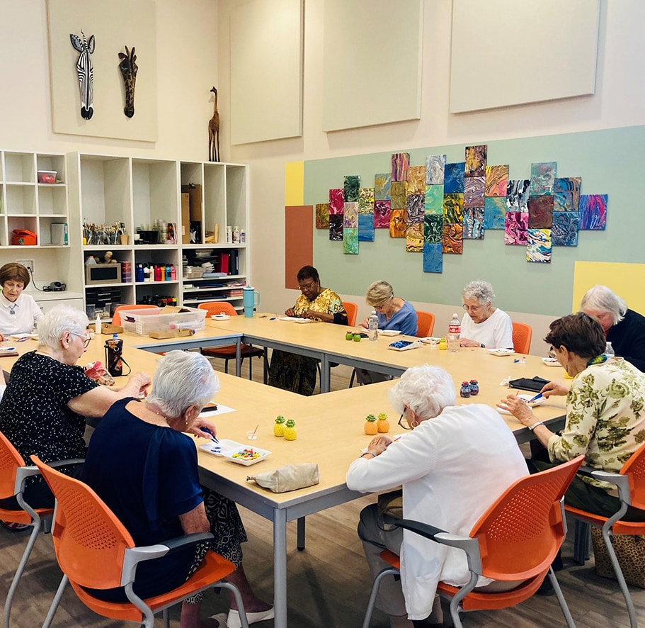 We integrate movement into many of our social activities. We also offer specific classes designed to improve balance, strength, and flexibility suitable for all ability levels.